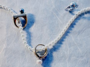N03-3 Pearl Rings with Diamonds in 18k Gold & Platinum.