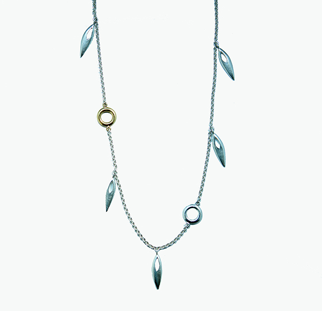 N07-Doughnut and Open Leaf Necklace in 18k Gold & Silver