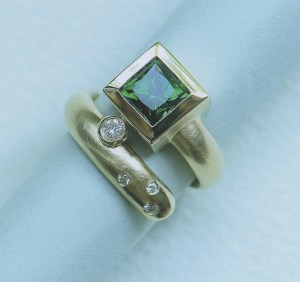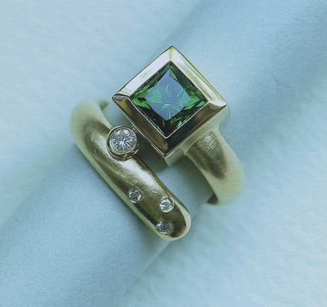 N19-Twist Band Square Tsavorite Ring with Diamonds in 18k Gold